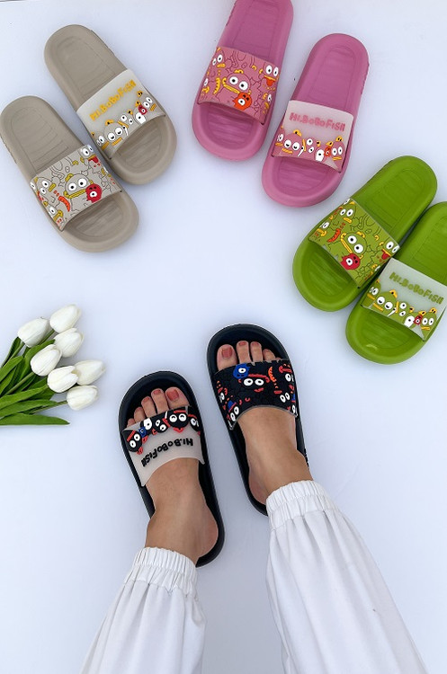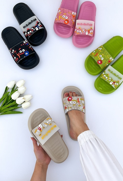 صندل راحتی بوبوفیش کفی از جنس eva نرم و رویه سیلیکونی میباشد.