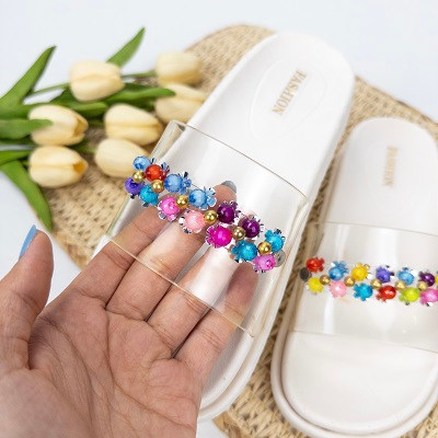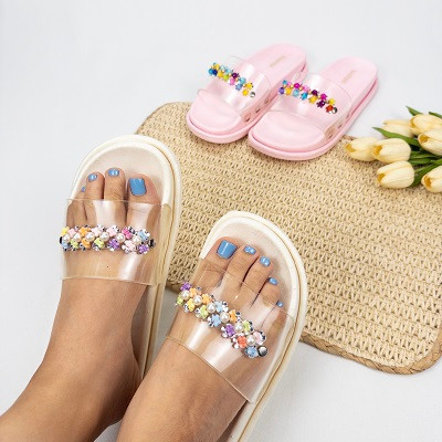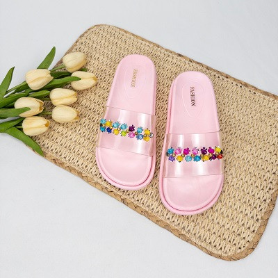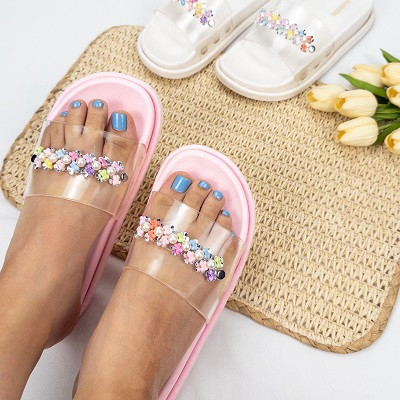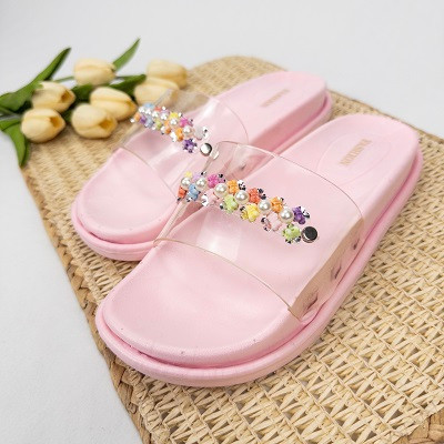 صندل زیبای مژگان از جنس ژله ای نرم و راحت و رویه pvc شیشه ای میباشد.